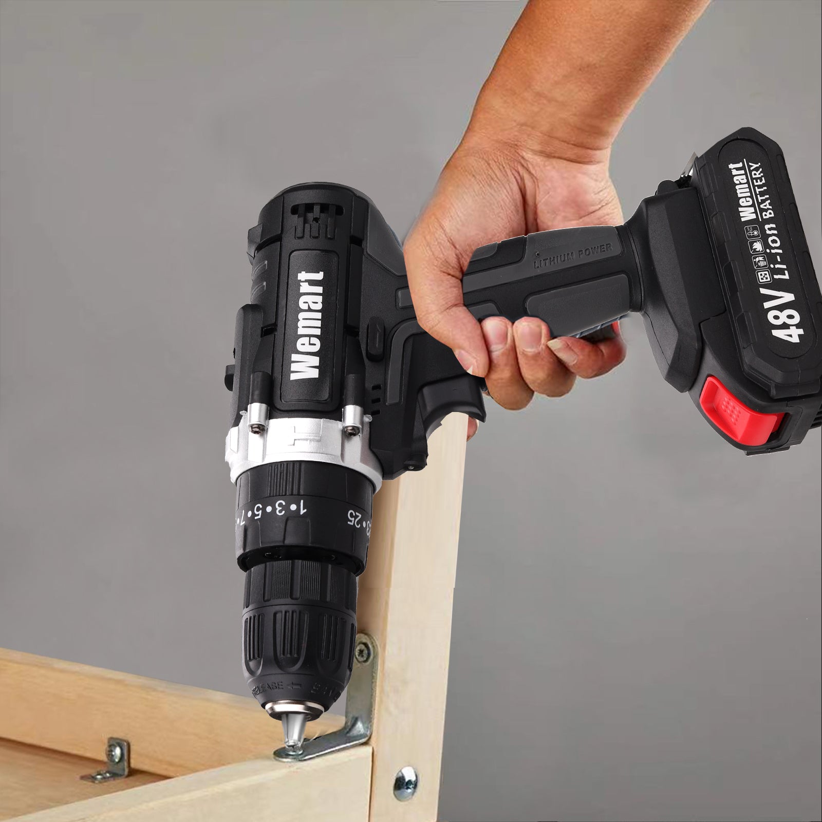 Wemart Cordless Drill Set, 48V Power Drill Kit with 2 Pcs Battery, 25+3 Position, 2 Variable Speed, 3/8'' Keyless Chuck, Fast Charger and 24 Pcs Accessories with Case